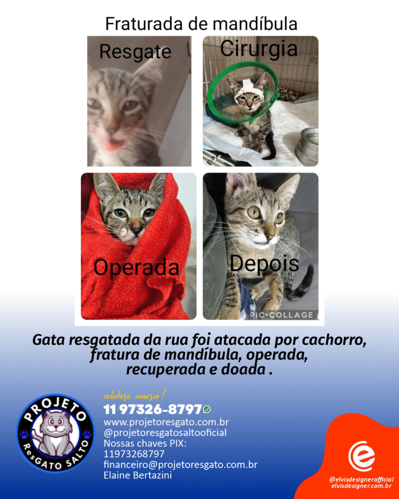 O Projeto Resgato Salto vem através destes antes e depois, expressar sua gratidão aos colaboradores do projeto, aos adotantes, a família Clínica Mandala dos Bichos e principalmente aos voluntários que dedicam seus dias a eles os gatinhos abandonados. Colabore, nosso projeto salva vidas!!